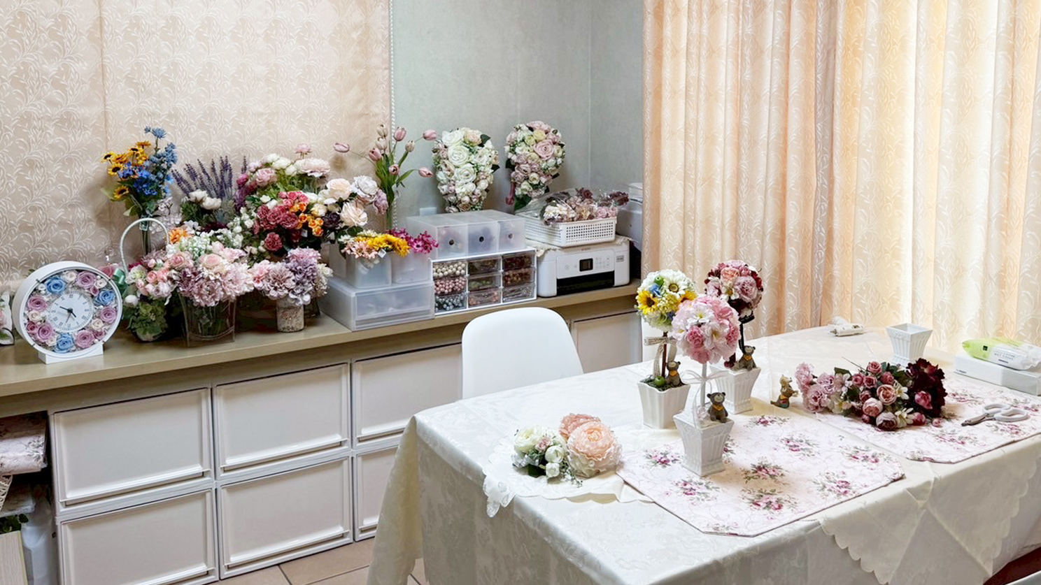 また自宅にてプリザーブドフラワー、アーティフィシャルフラワーのレッスンも行っております。